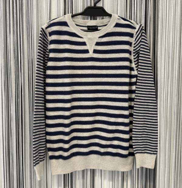 | Popis | Chlapecký svetr, značky Next, pruhovaný. Uvedená délka rukávu je měřena od krku. Svetr velmi pěkný, bez vad. Second hand. |