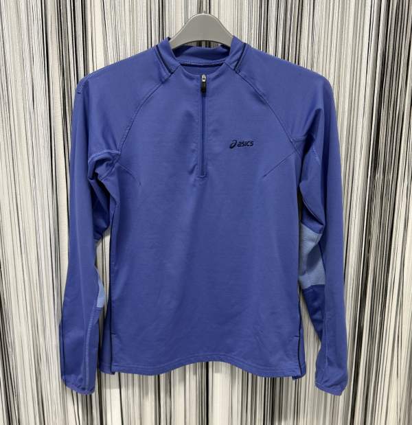 | Popis | Dámská funkční sportovní mikina, značky Oasics, fialovo-modrá barva. Uvedená délka rukávu je měřena od krku. Mikina velmi pěkná, vhodná na běh. Second hand. |