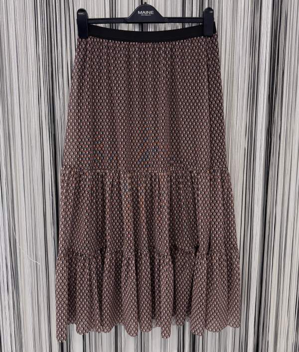 | Popis | Dámská maxi sukně s černou spodničkou, značky MSCH, hnědé barvy se vzorem Sukně velmi pěkná, jako nová, top stav. Second hand. |