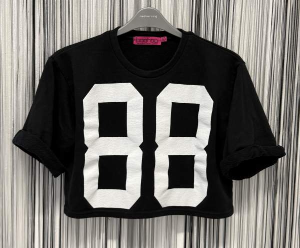 | Popis | Dámské sportovní crop tričko, značky Boohoo, černé barvy s číselným obrázkem na přední straně. Tričko velmi pěkné, bez vad. Second hand. |