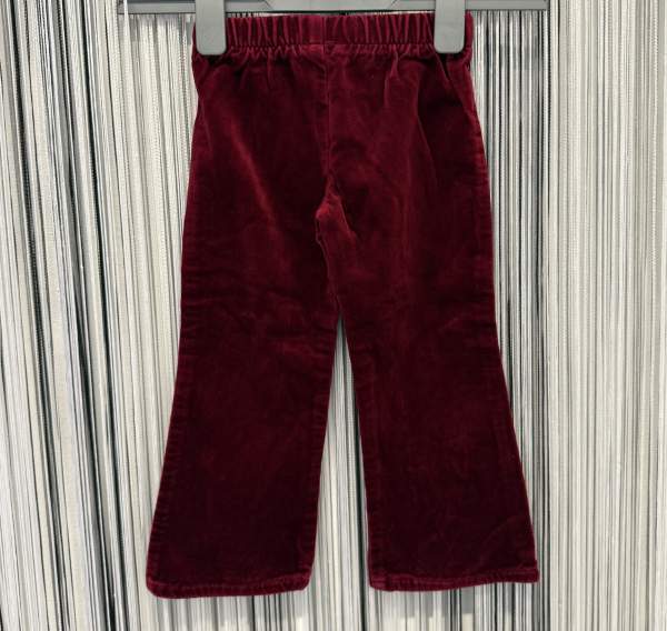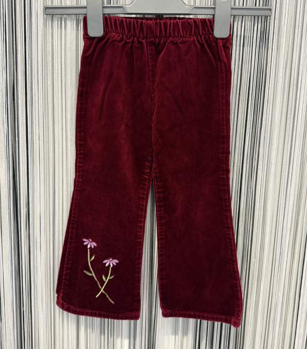 Popis | Dívčí sametové kalhotové tepláky, značky Marks Spencer, vínové barvy s květinou na nohavici. Délka vnitřní nohavice - 37 cm Kalhoty velmi pěkné bez vad. Second hand. |