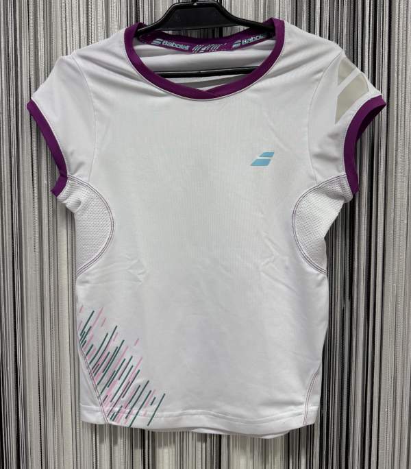 Popis | Dívčí tenisové tričko, značky Babolat, bílé barvy, s logem na přední i zadní traně. Tričko velmi pěkné bez, vad. Second hand. |