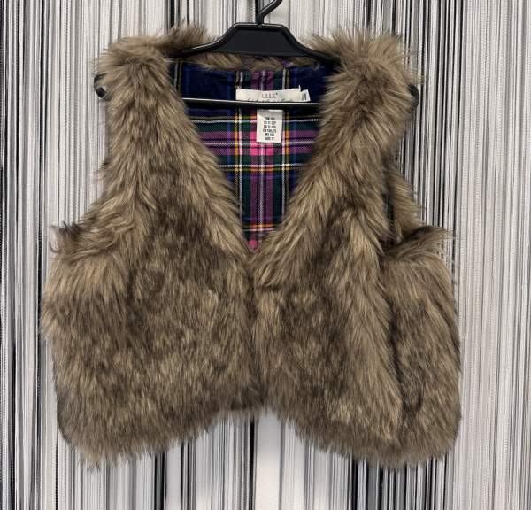 Dívčí krátká chlupatá vesta značky LOGG, hnědé barvy.